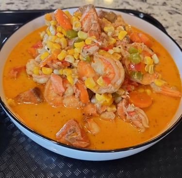 An over-the-top seafood delight loaded with flaky salmon, succulent shrimp, and bold spices comforting, flavorful, and unforgettable.